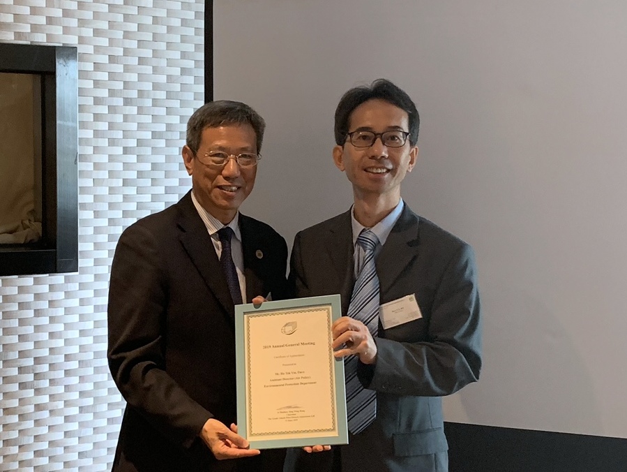 主席鄧永漢先生致送紀念品予環保署助理署長何德賢先生JP
