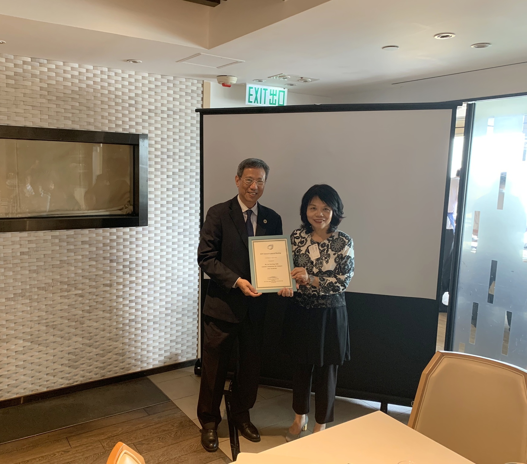 主席鄧永漢先生致送紀念品予運輸署助理署長(新界)李艷芳女士JP